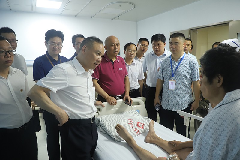 在渌口区第一人民医院,王运柏一行实地查看了医院基础设施建设,详细了解了医保健康扶贫“一站式”结算等相关工作,并与在院建档立卡贫困户刘某就看病贵不贵,就医难不难,服务好不好,负担重不重等问题进行了亲切的交流。王运柏强调,健康扶贫“一站式”结算是一项惠民便民利民工程,对打赢脱贫攻坚战,解决因病致贫、因病返贫问题肩负重要使命。同时要医保部门的同志,务必牢记新时代新医保新要求,坚持科学合理保障,既不降低标准,也不吊高胃口。