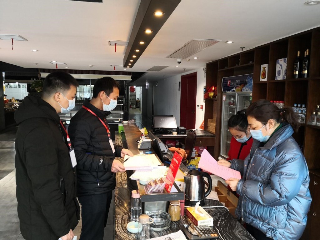 自2月12日进驻社区开始,株洲市医疗保障局派驻天元区栗雨街道湘湾社区工作队,成立临时党小组,与社区工作者一起,对辖区内商户门店运行情况的每日巡查,扎紧社区疫情防控“口袋”的同时,“搭把手”助力门店复工。为社区门店复工送去口罩等防疫物资,为门店张贴“抗击疫情 人人有责”的宣传标语,上门解决复工有关困难,湘湾社区共140家门店,现已有89家开业复工,复工率达64%。