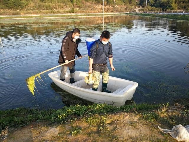 枧田村曾是省级贫困村,500多户村民以发展稻虾、藕虾种养为主。人误地一时,地误人一年,农时不等人,春耕生产以来,枧田村驻村工作队坚持防控和生产“两手抓”“两不误”。天气转暖,小龙虾都开始觅食了,驻村工作队戴着口罩,组织合作社村民向稻田里的虾苗喂食,确保虾苗高存活率。同时,动员返乡青年组成志愿者队伍,开展“我的家乡我有责、建设家乡为自己”活动,积极参与春耕生产,并要求村民来去田间要佩戴好口罩,不在田间扎堆闲聊。