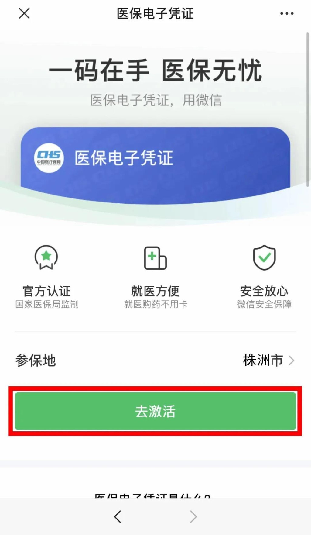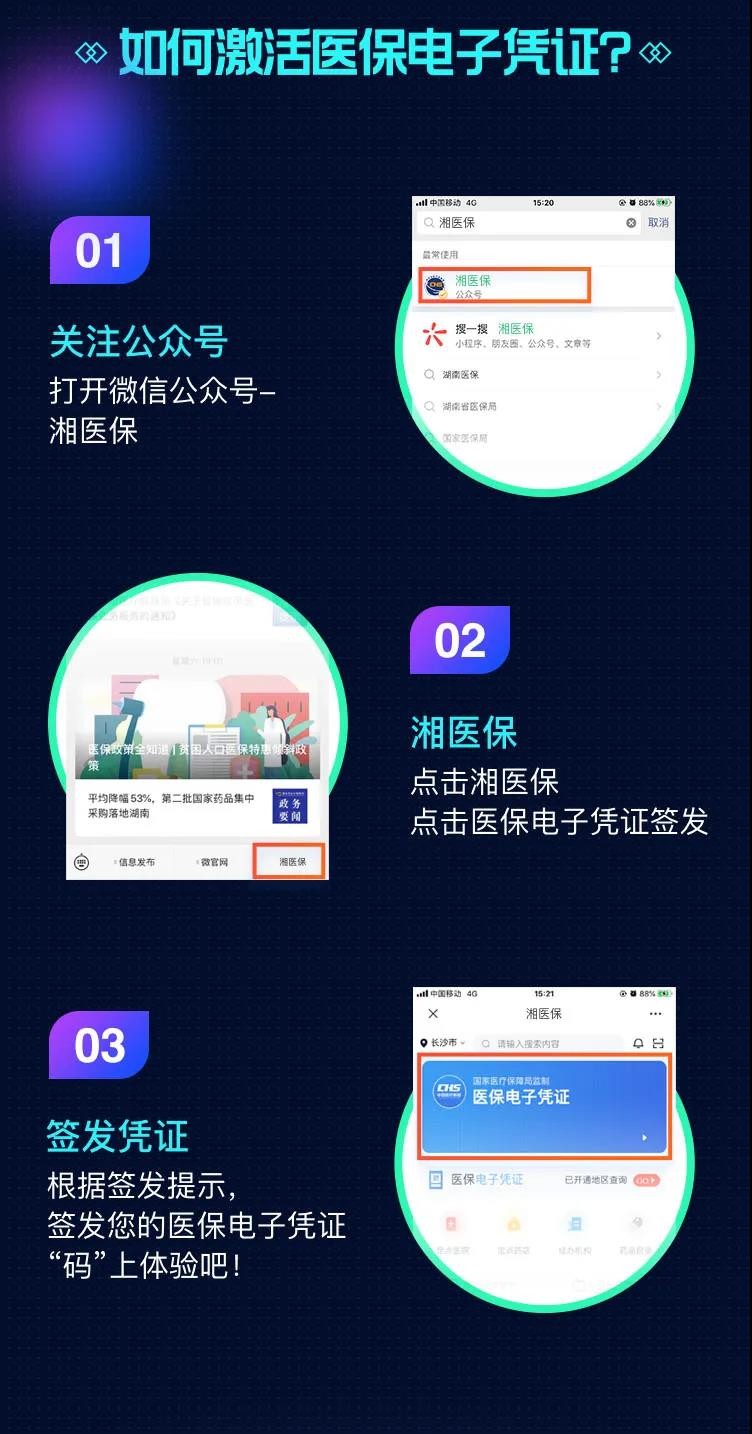 湖南参保人均可通过手机激活医保电子凭证,激活后可进行参保缴费、预约挂号、医保账户查询、医保业务办理等各类在线医保服务。激活方式有:1、通过关注湖南省医疗保障局微信公众号进行激活;2、通过国家医疗保障局官方APP进行激活;3、通过关注“株洲医保”微信服务号,点击进入“智慧医保”进行激活。