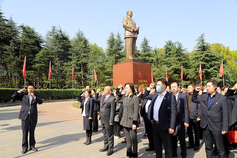 全体党员抵达韶山后,首先来到毛主席铜像广场,举行敬献花篮仪式。在庄严肃穆的气氛中,全体党员向毛主席铜像三鞠躬,绕铜像一周,重温入党誓词,表达对伟人的深切缅怀与崇高敬意。