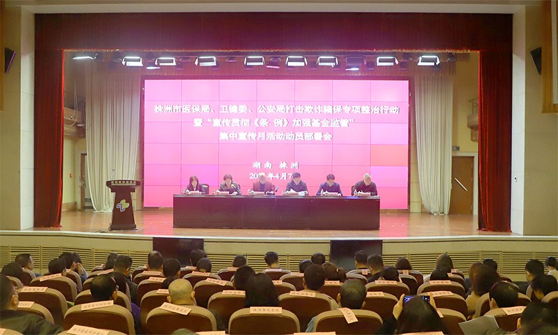 4月7日上午,株洲市医疗保障局、公安局、卫生健康委员会联合组织召开打击欺诈骗保专项整治行动暨“宣传贯彻《条例》 加强基金监管”集中宣传月活动动员部署会议。市医保局党组书记、局长陈志鸿,市卫健委党委委员、副主任姚智辉出席并讲话,市医保中心主任胡宁、市医保局四级调研员杨磊落、市公安局刑侦三大队大队长胡红春出席会议,会议由市医保局党组成员、副局长王小琴主持。各县市区医保局分管负责人和基金监管负责人、合作商业保险公司分管负责人、市医保局基金监管社会监督员、市本级协议医疗机构分管负责人和医保科负责人、特门特药药店负责人等200余人参加会议。
