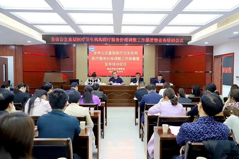 为规范和调整全市公立基层医疗卫生机构医疗服务价格,优化医疗服务价格结构,规范价格管理,4月28日上午,市医保局、市卫健委联合组织召开全市公立基层医疗卫生机构医疗服务价格调整工作部署暨业务培训会议。各县市区医保局价格招采股负责人、卫健局相关股室负责人及28家抽样调查的公立基层医疗卫生机构分管负责人、物价办(或财务科)负责人参会。市医保局价采科负责人,市卫健委基层卫科、体改科负责人就我市公立基层医疗卫生机构医疗服务价格调整工作进行了动员和部署,第三方专业机构围绕做好医疗服务价格调查工作进行授课培训。