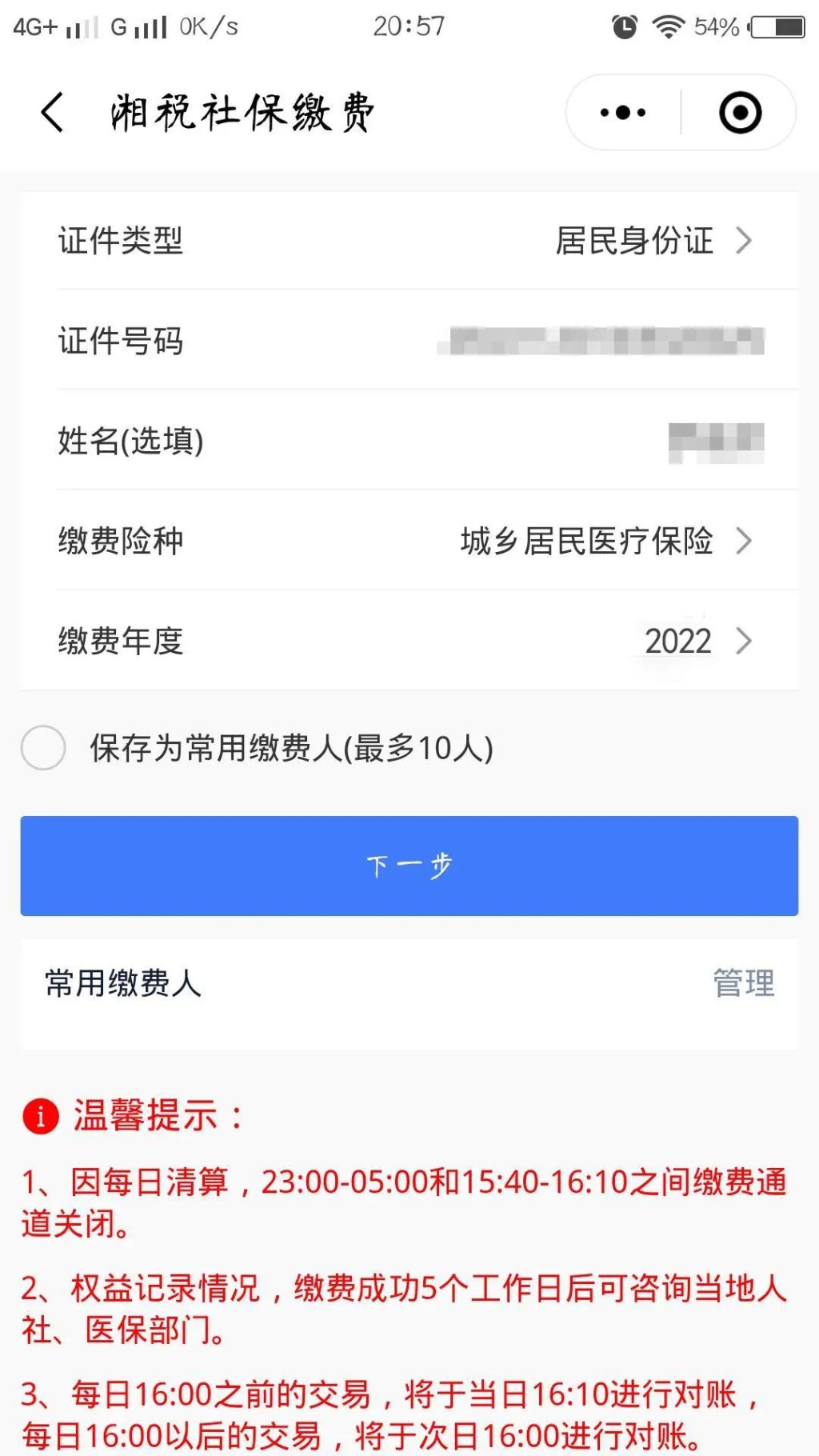缴费操作步骤:长按识别二维码→进入“湘税社保微信小程序” →注册、登录→选择缴费险种→信息确认→费用支付