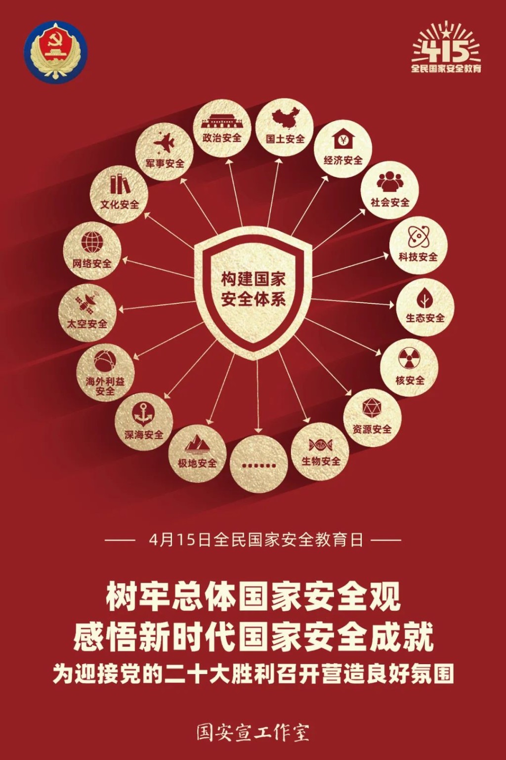 在第七个全民国家安全教育日即将到来之际,“国安宣工作室”发布了 “树牢总体国家安全观、感悟新时代国家安全成就、为迎接党的二十大胜利召开营造良好氛围” 官宣海报。