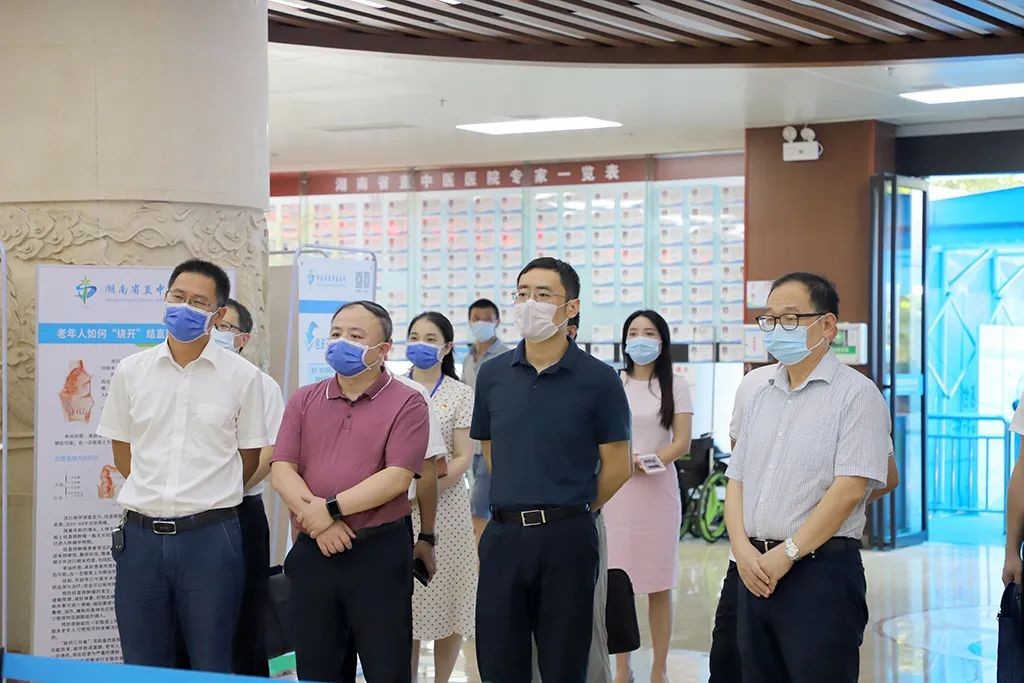 国家医保局规财司信息化处干部张捷,湖南省医保局党组成员、副局长孙兆泉,规划财务和法规处处长石珊,规划财务和法规处副处长杜智军,株洲市医保局党组书记、局长张文,党组成员、副局长程淼清,党组成员、副局长胡宁,湖南省直中医医院党委书记段云峰,党委副书记、院长伍世葵,党委委员、副院长江志超陪同。