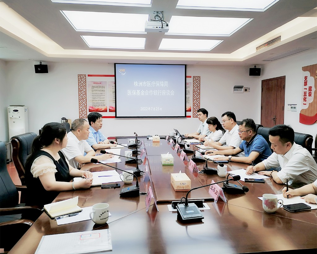 为进一步规范我市医保基金管理,加强与银行业务合作,拓展服务领域和范围,推进医保事业高质量发展,7月25日下午三点,市医保局召开医保基金合作银行座谈会。市医保局党组书记、局长张文出席座谈会,华融湘江银行株洲分行、长沙银行株洲分行、招商银行株洲分行相关负责人及市医保局相关同志参加座谈。