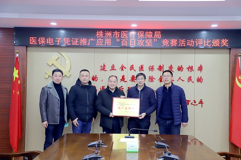 为有效提升我市医保公共服务能力,促进“互联网+医保”发展,加快推进医保电子凭证的激活应用及推广,让人民群众享受更优质、更便捷的医保服务,根据《株洲市开展医保电子凭证推广应用“百日攻坚”竞赛方案》(株医保函〔2022〕36号)文件精神, 1月16日,市医保局召开医保电子凭证推广应用“百日攻坚”竞赛活动颁奖仪式,对全市医保电子凭证推广应用“百日攻坚”竞赛活动评比获奖代表单位进行颁奖,市医保局党组书记、局长张文为获奖单位颁奖,并作重要讲话。局党组成员、副局长程淼清主持仪式,市中心医院党委副书记、副院长彭俊敏,湖南千金大药房连锁有限公司副总经理朱大明,石峰区医保局局长杨湘红等获奖单位代表参加颁奖仪式。