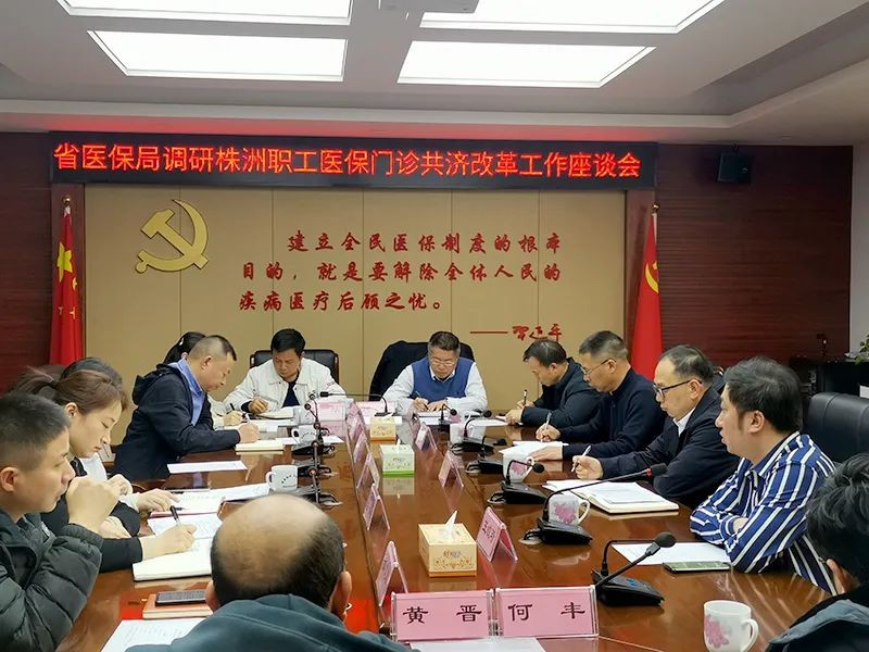 2月21日下午,省医保局副局长孙兆泉在我市主持召开职工医保门诊统筹共济保障工作座谈会,听取医保部门、老干部门以及部分大型国有企业意见建议。市医保局党组成员、副局长程淼清,市委老干部局相关负责人,部分县市区医保局主要负责人,中车株洲电力机车股份有限公司、中国航发南方工业有限公司、中车株洲电力机车研究所有限公司、株洲硬质合金集团有限公司、中国航空动力机械研究所等大型国有企业人力资源部门负责人参加座谈会。