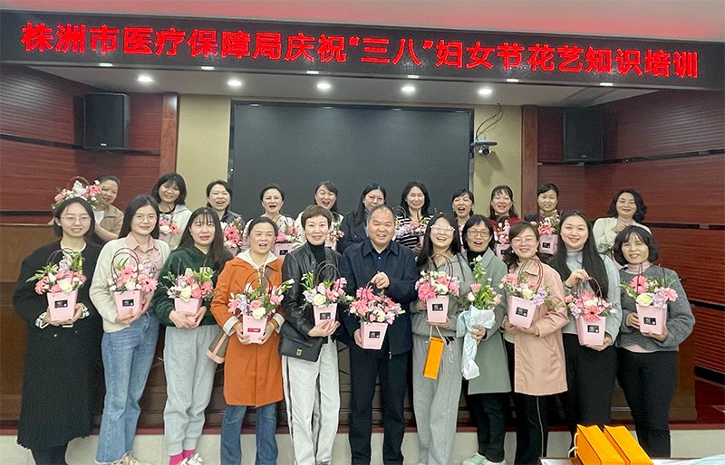 3月8日,市医保局为庆祝三八国际妇女节,举办花艺知识培训主题活动,全体女职工参加了活动。