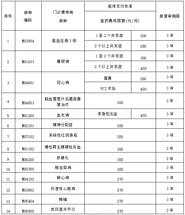 根据湖南省医疗生育保险服务中心《关于优化门诊慢特病复审流程的通知》(湘医保中心函〔2024〕4号)文件要求,从2024年3月1日起,我市对31个门诊慢特病(详见附件)进一步简化了复审流程,在待遇到期前(目前系统设置的是待遇到期前2个月至后1个月的时间范围内),参保人员可通过线上提出延期申请,不需重复提交评审资料,经办机构根据申请人就诊或用药记录,决定是否延期,原则上“即申即延”。通过后按原待遇延期1年,不通过的仍需提交评审资料进行复审。
