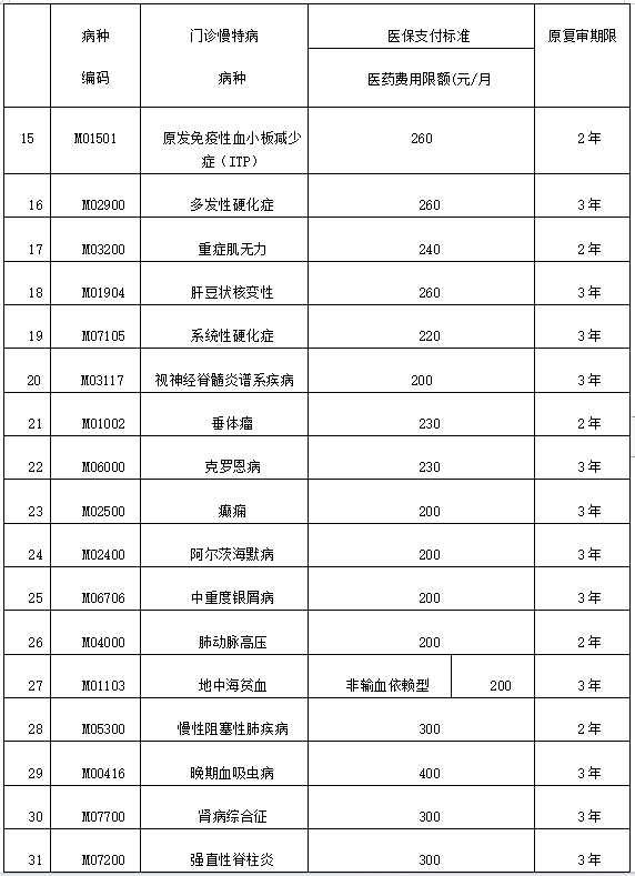 二、可以线上申请待遇延期的31个门诊慢特病病种
