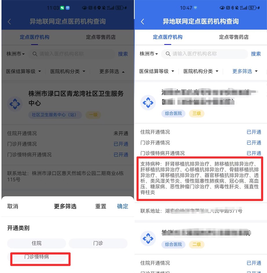 特别提示:参保地如需参保人在本人选定的门诊慢特病定点医疗机构就医的或对就医定点医疗机构有等级要求的,参保人要按照参保地相关规定执行。