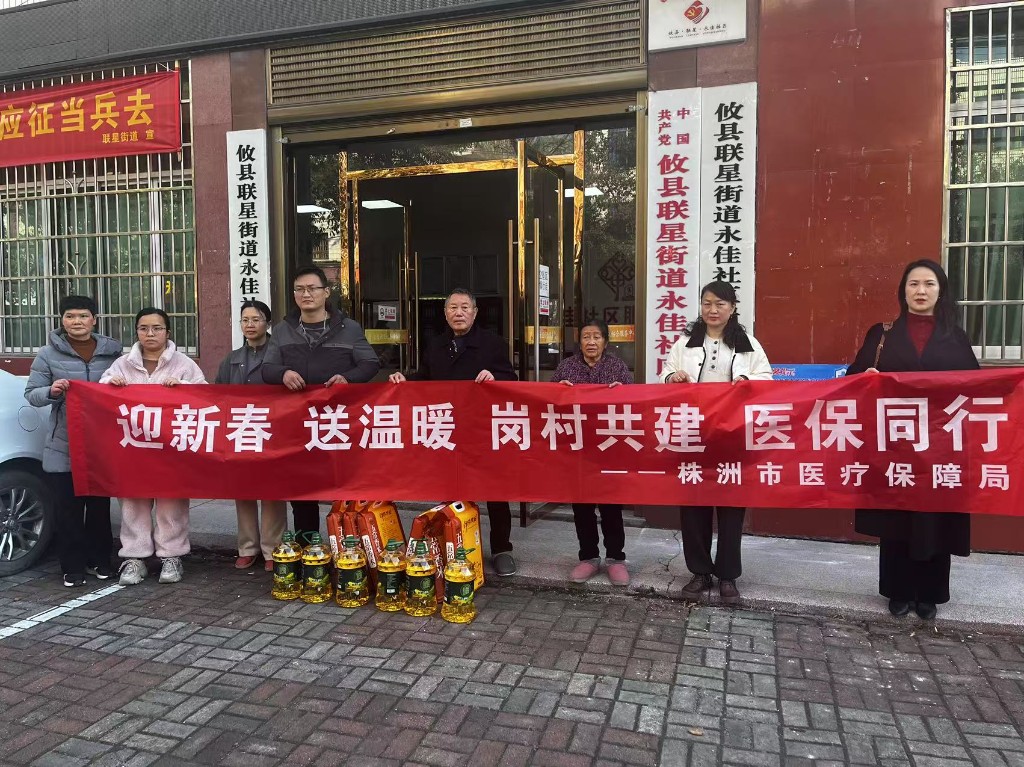 蛇年春节来临之际,为进一步落实与推进巾帼文明岗“岗村结对”工作,1月17日,株洲市医疗保障局赴“岗村共建”结对单位——攸县联星街道永佳社区开展2025年春节送慰问、送温暖活动。