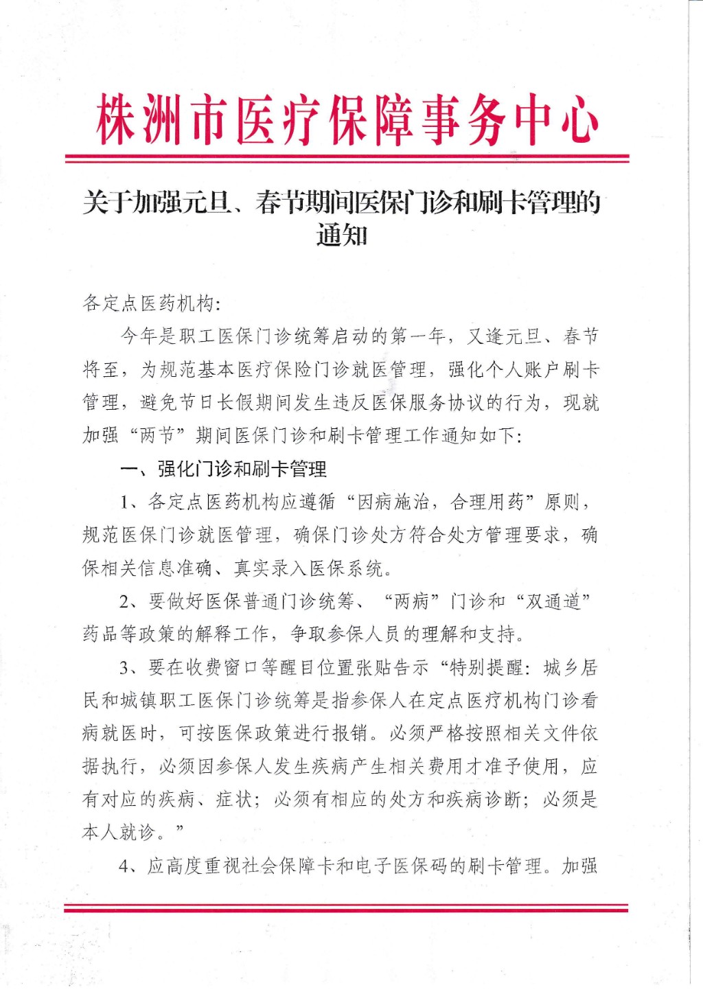 关于加强元旦、春节期间医保门诊和刷卡管理的通知