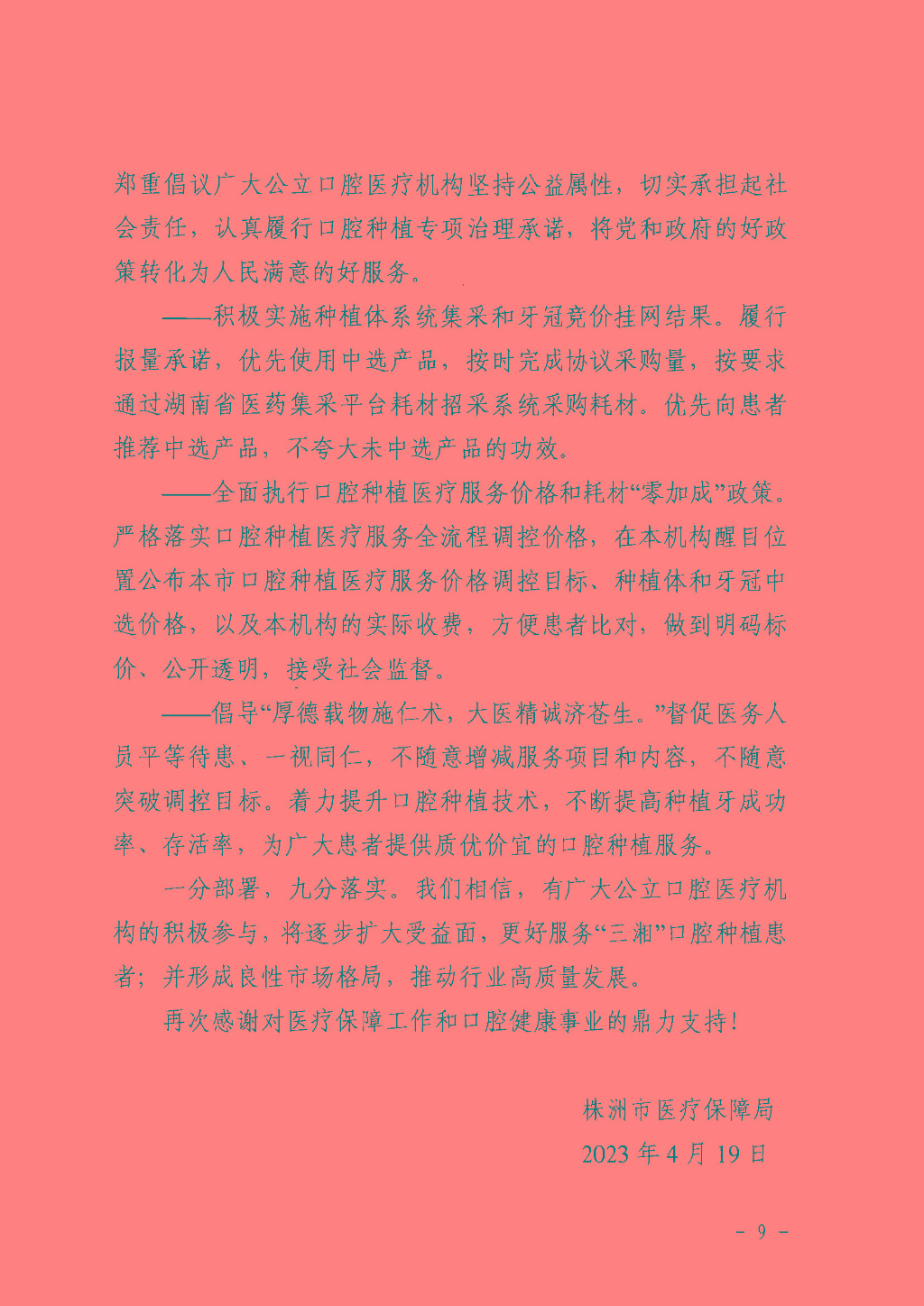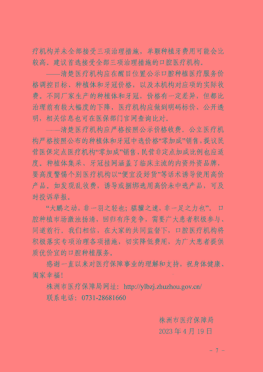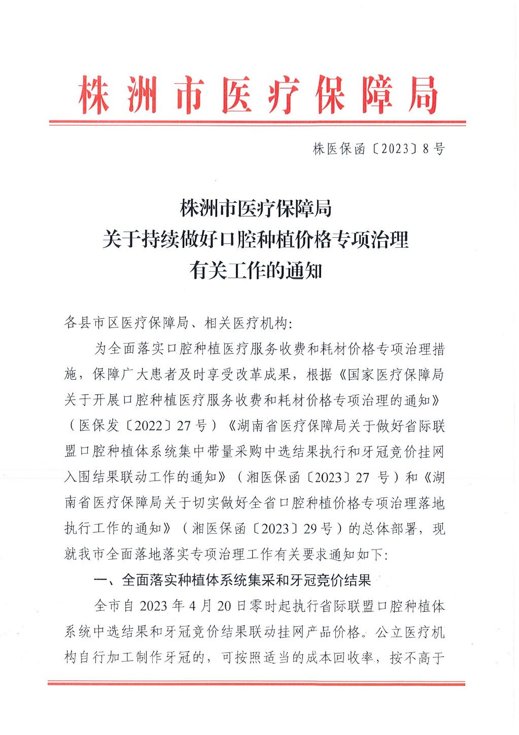 株洲市医疗保障局关于持续做好口腔种植价格专项治理有关工作的通知