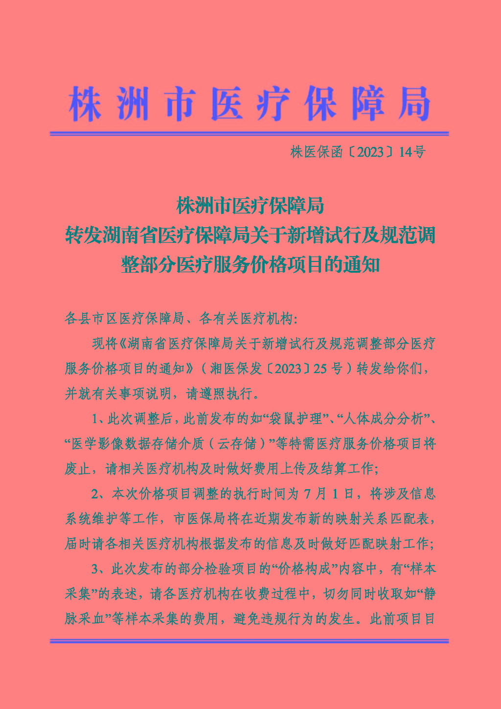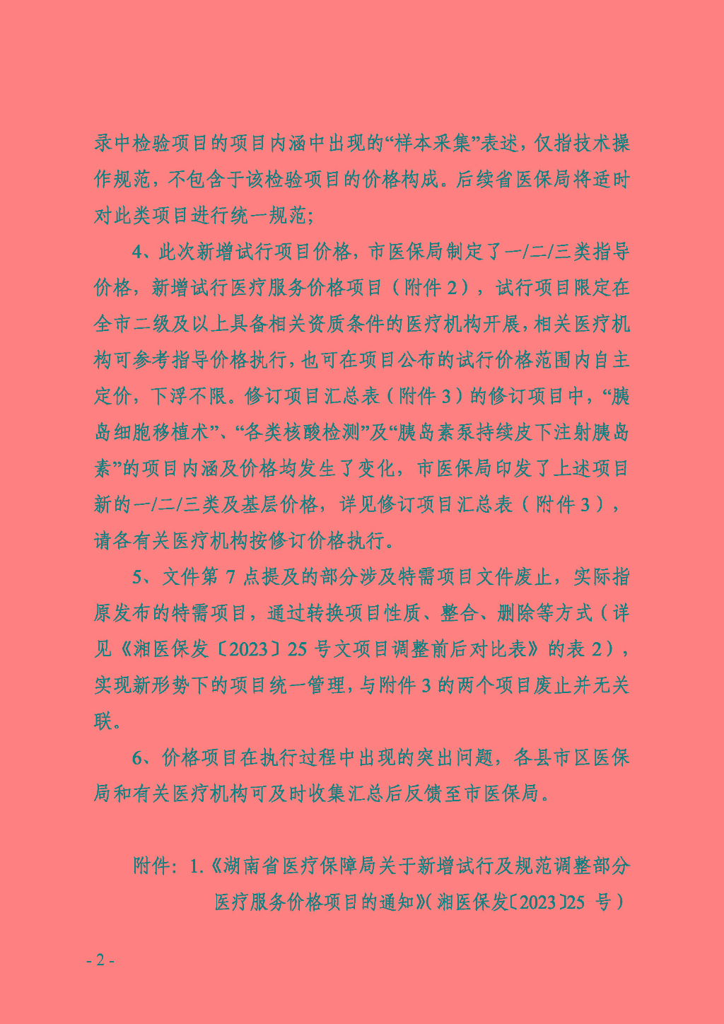 1.湘医保发〔2023〕25号-关于新增试行及规范调整部分医疗服务价格项目的通知