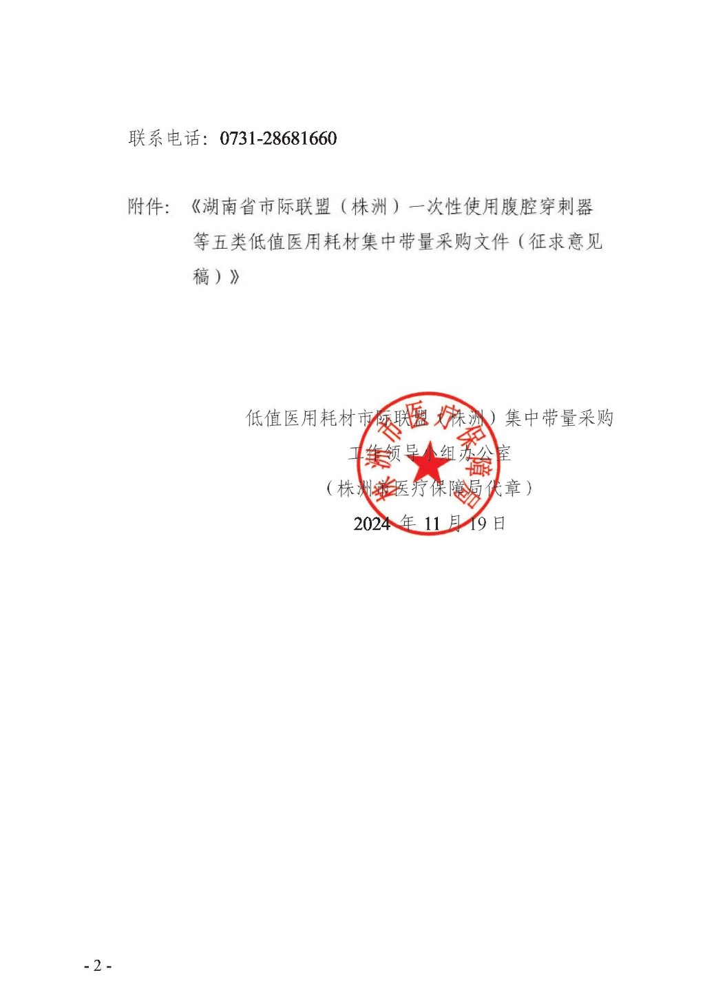 湖南省市际联盟(株洲)一次性使用腹腔穿刺器等五类低值医用耗材集中带量采购文件(征求意见稿)