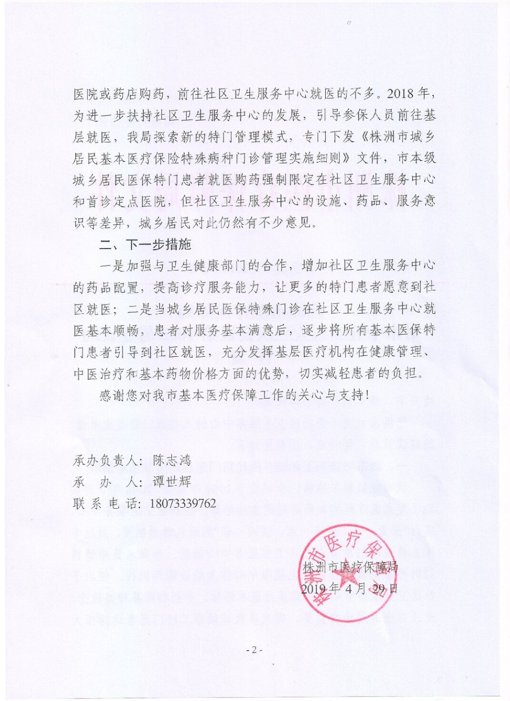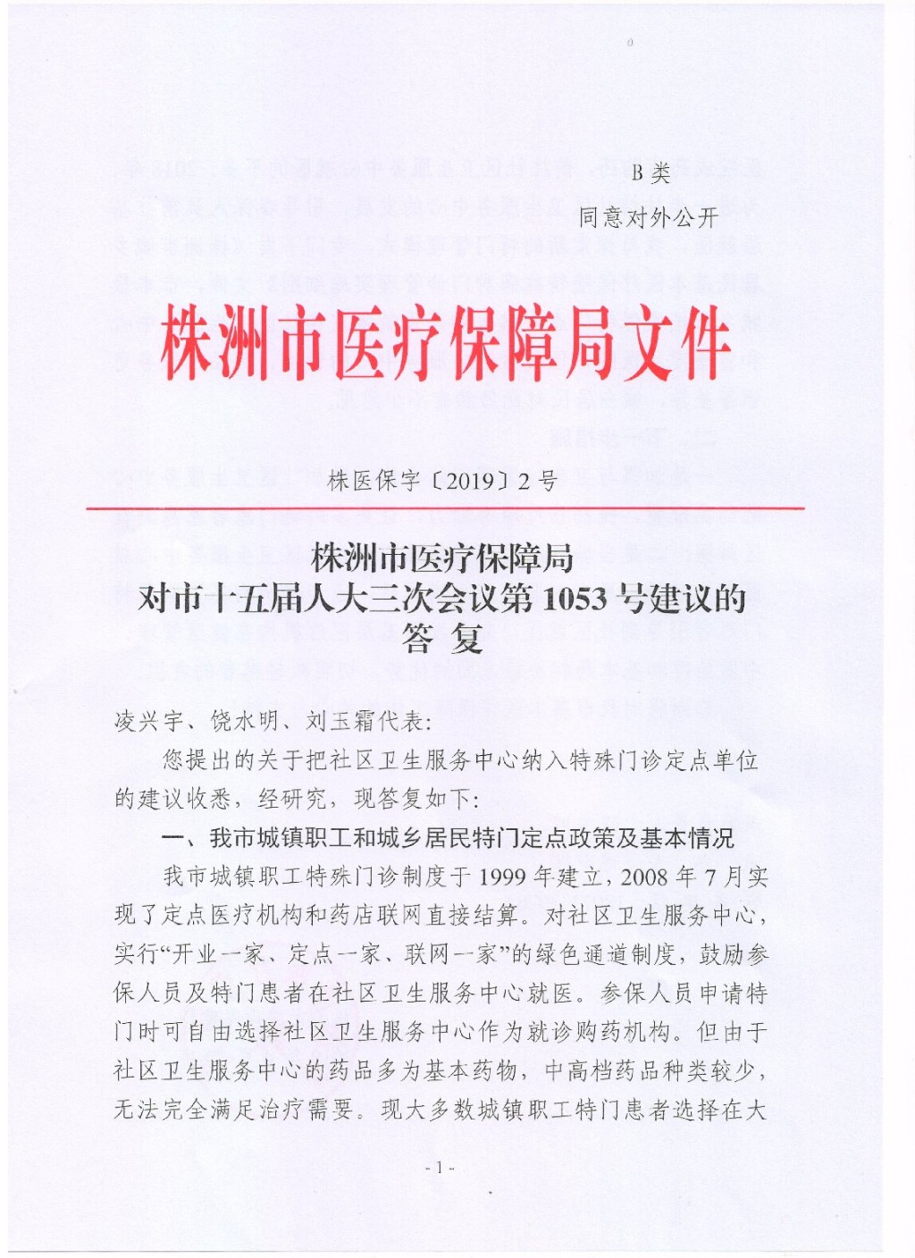 株洲市医疗保障局对市十五届人大三次会议第1053号建议的答复