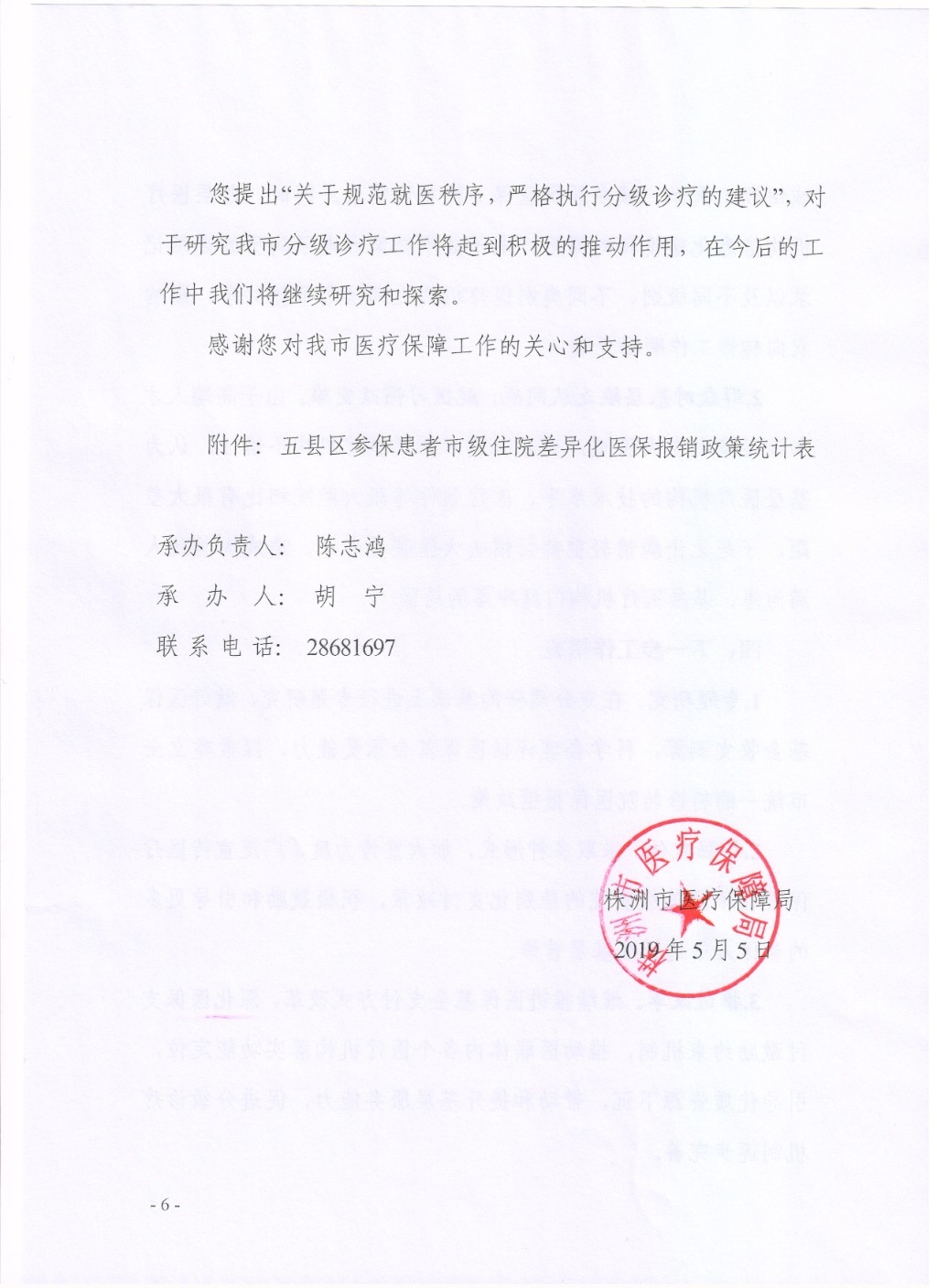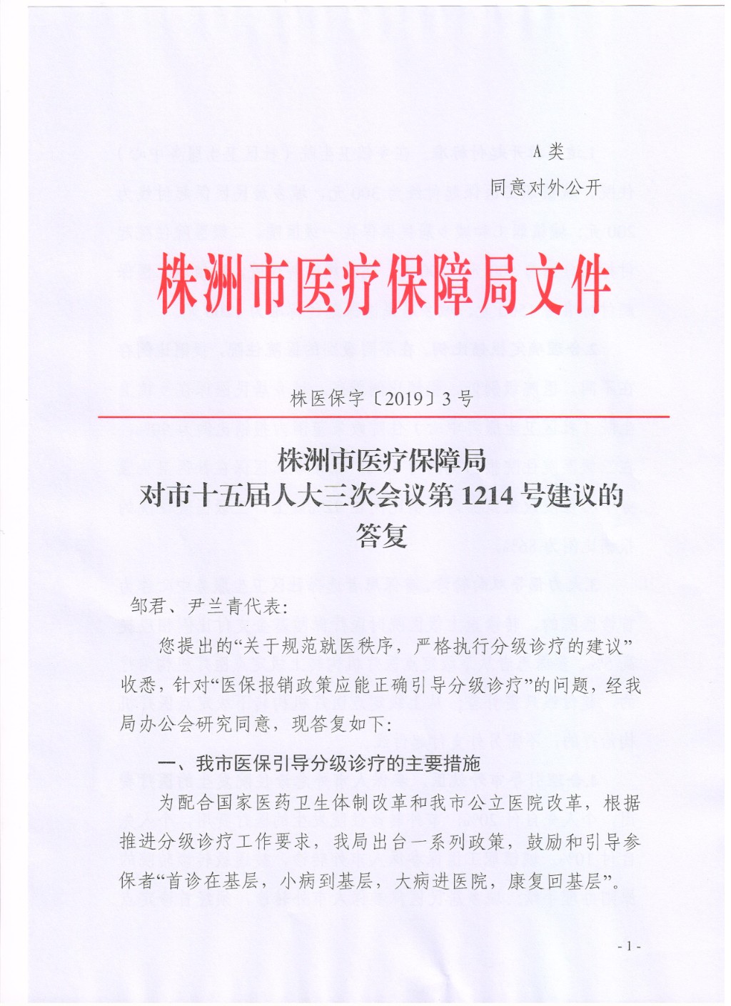 株洲市医疗保障局对市十五届人大三次会议第1214号建议的答复