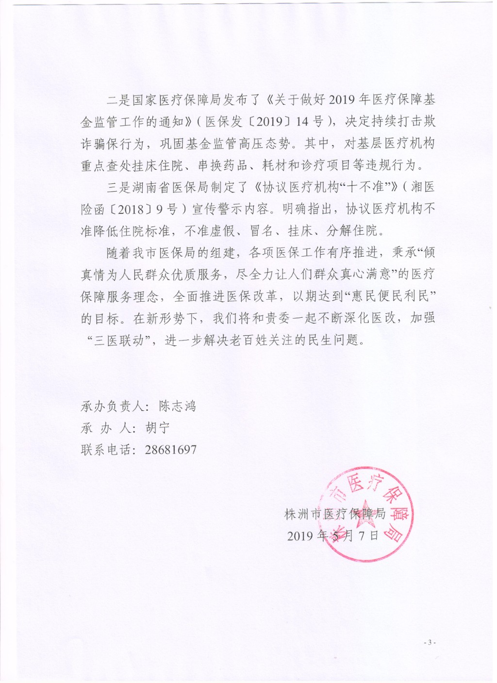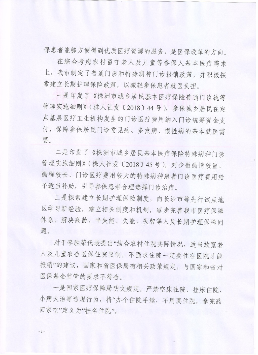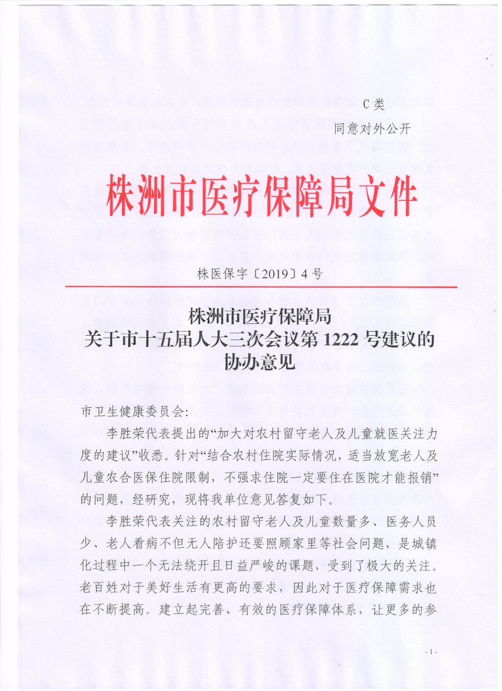 株洲市医疗保障局对市十五届人大三次会议第1222号建议的协办意见