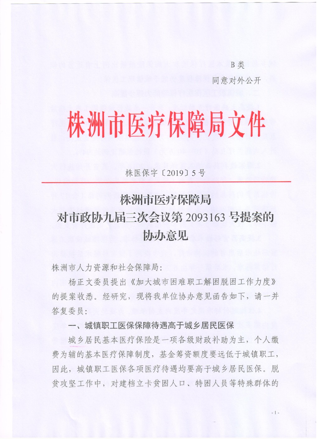 株洲市医疗保障局关于市政协九届三次会议第2093163号提案的会办意见