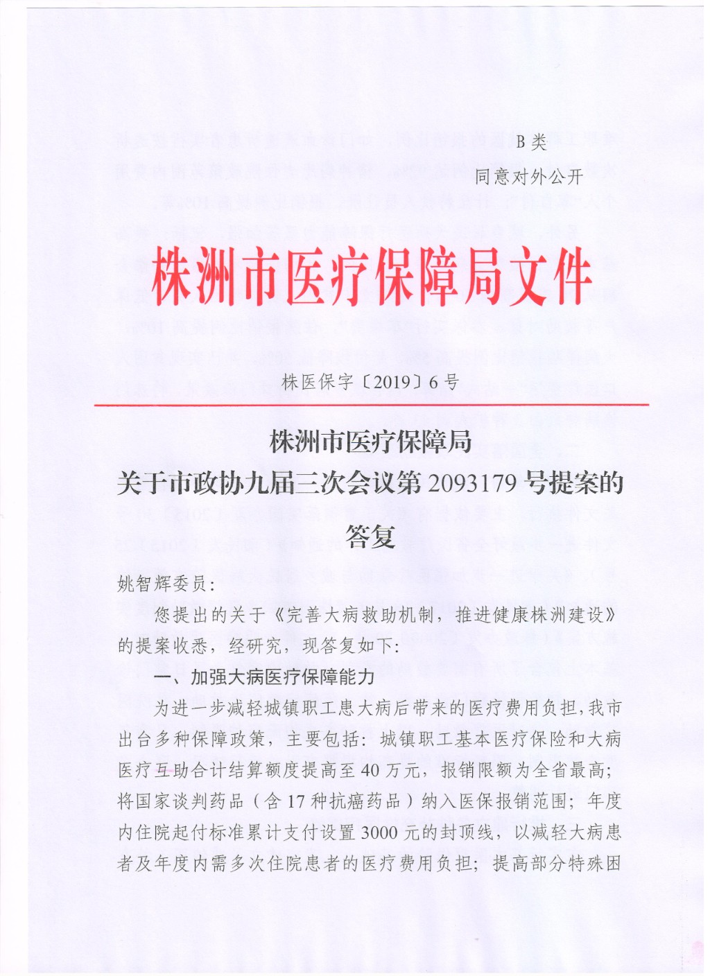 株洲市医疗保障局关于市政协九届三次会议第2093179号提案的答复