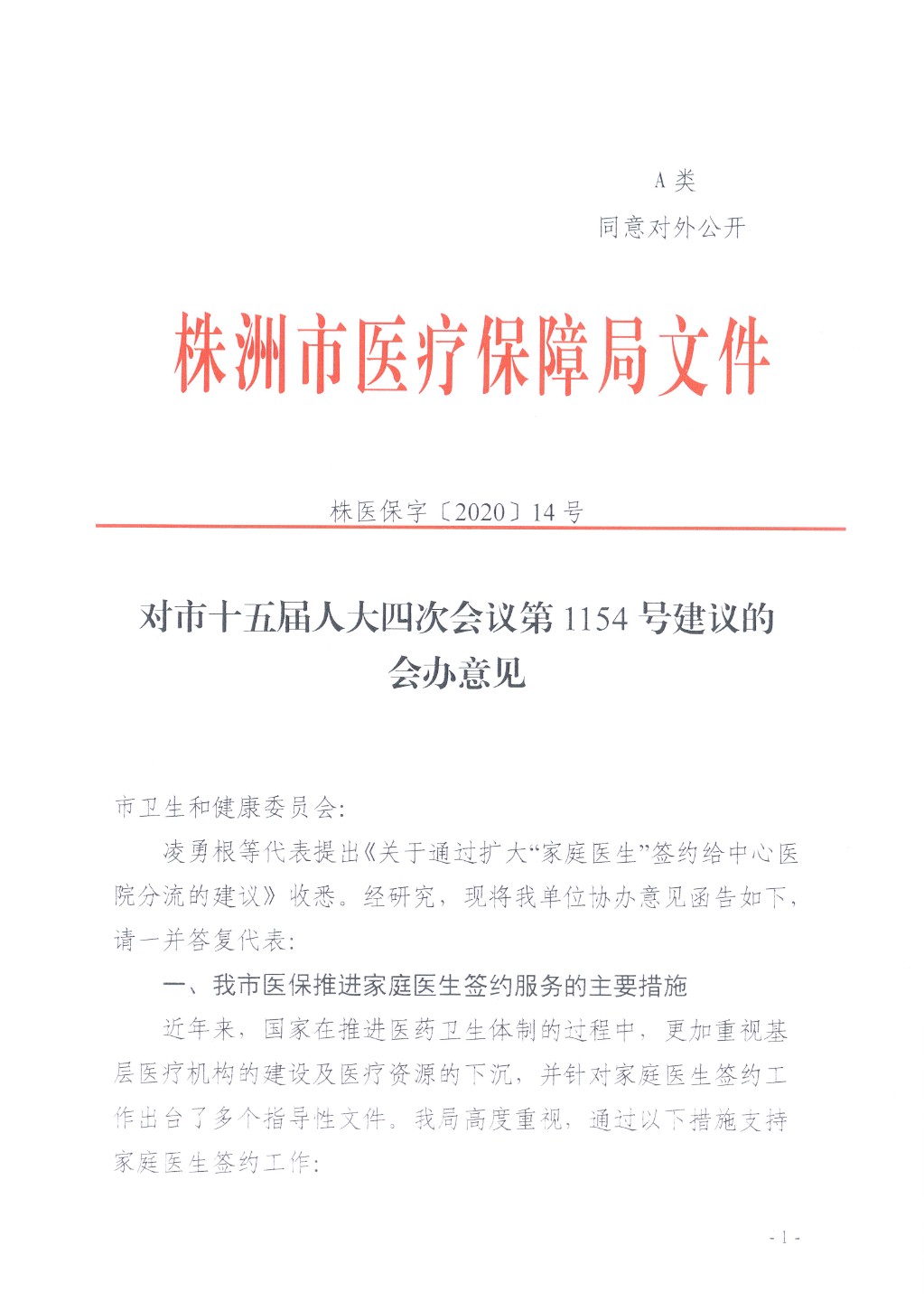 株洲市医疗保障关于对市十五届人大四次会议第1154号建议的会办意见