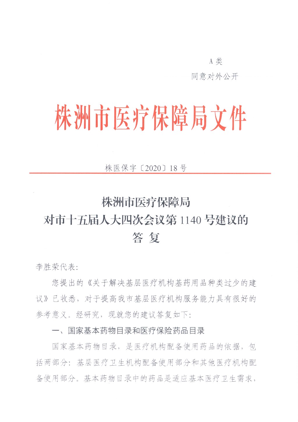株洲市医疗保障关于对市十五届人大四次会议第1140号建议的答复