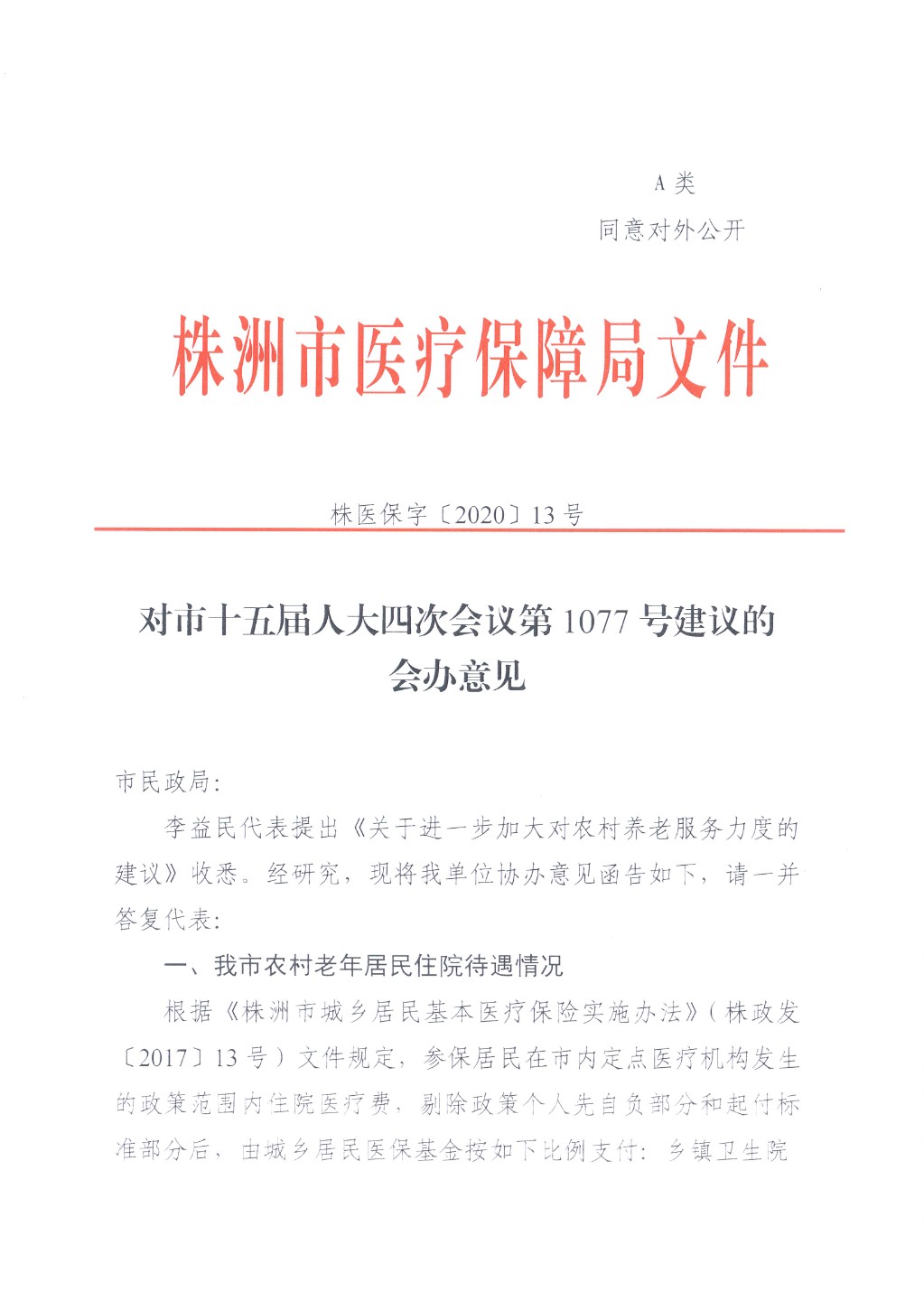株洲市医疗保障关于对市十五届人大四次会议第1077号建议的会办意见