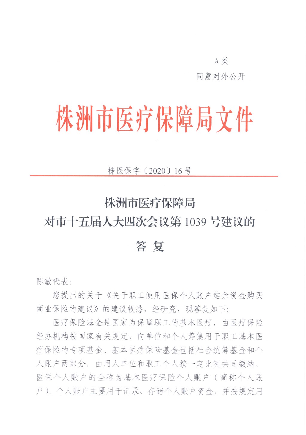 株洲市医疗保障关于对市十五届人大四次会议第1039号建议的答复