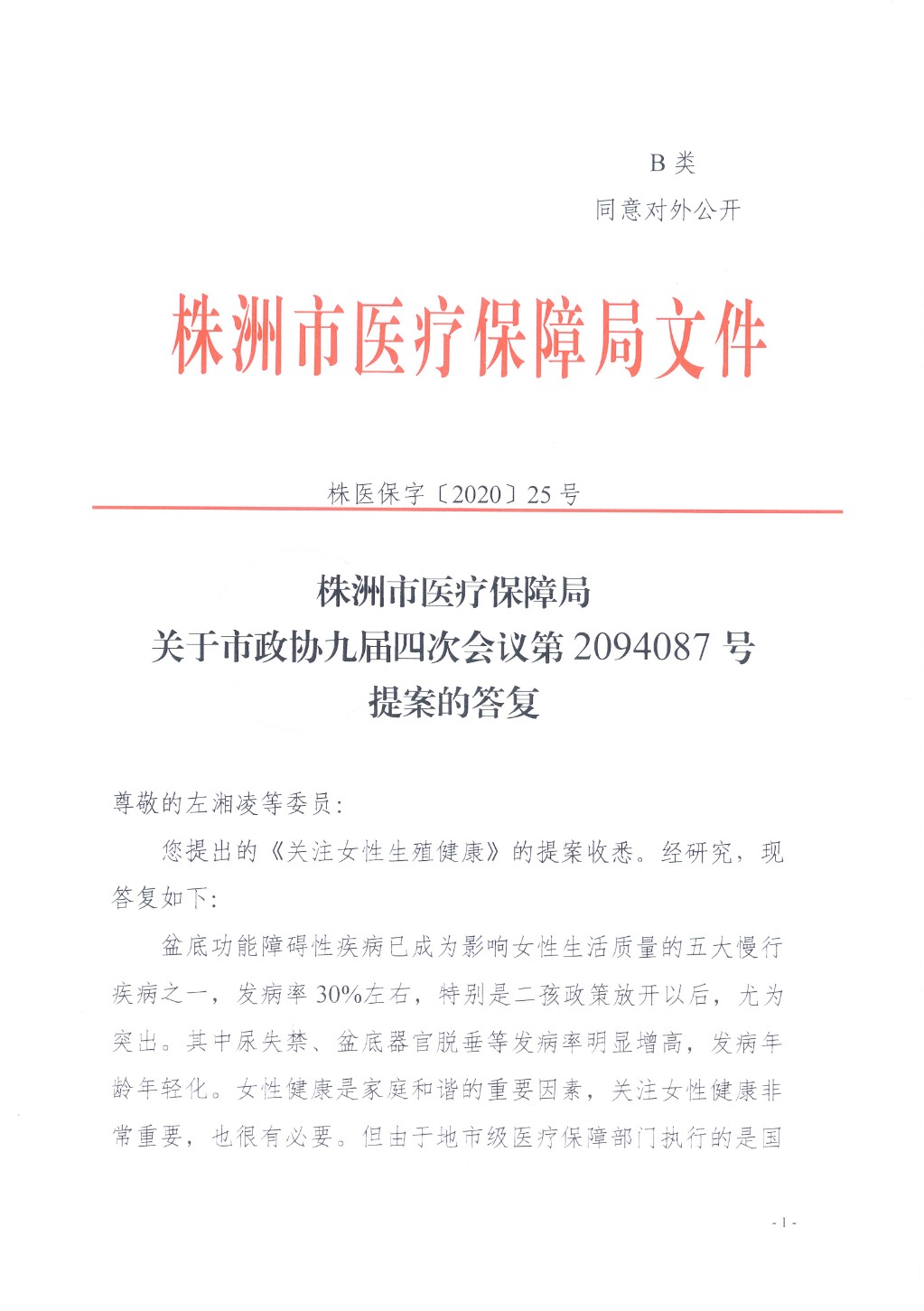 株洲市医疗保障局关于市政协九届四次会议第2094087号提案的答复