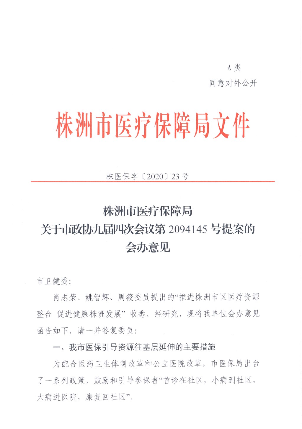 株洲市医疗保障局关于市政协九届四次会议第2094145号提案的会办意见