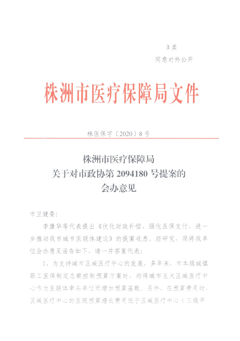 株洲市医疗保障局关于市政协九届四次会议第2094180号提案的会办意见