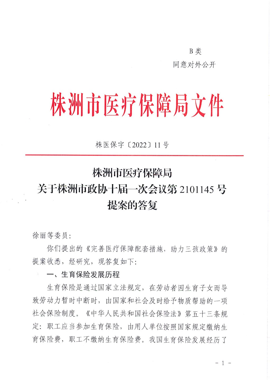 株洲市医疗保障局关于市政协十届一次会议第2101145号提案的答复