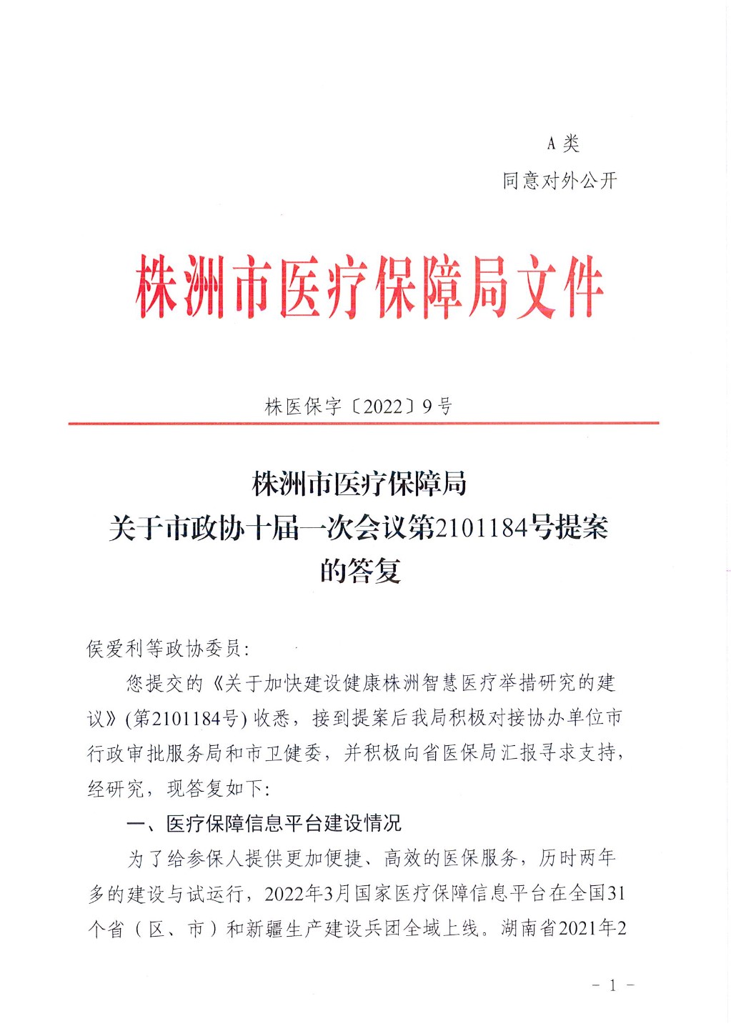 株洲市医疗保障局关于市政协十届一次会议第2101184号提案的答复