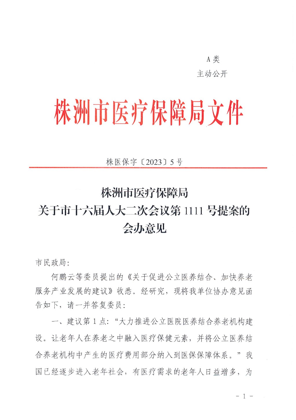株洲市医疗保障局关于市十六届人大二次会议第1111号提案的会办意见