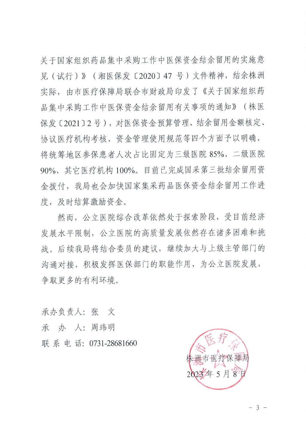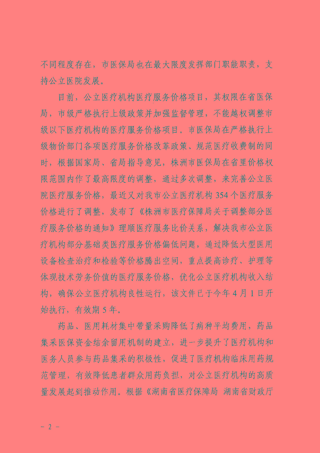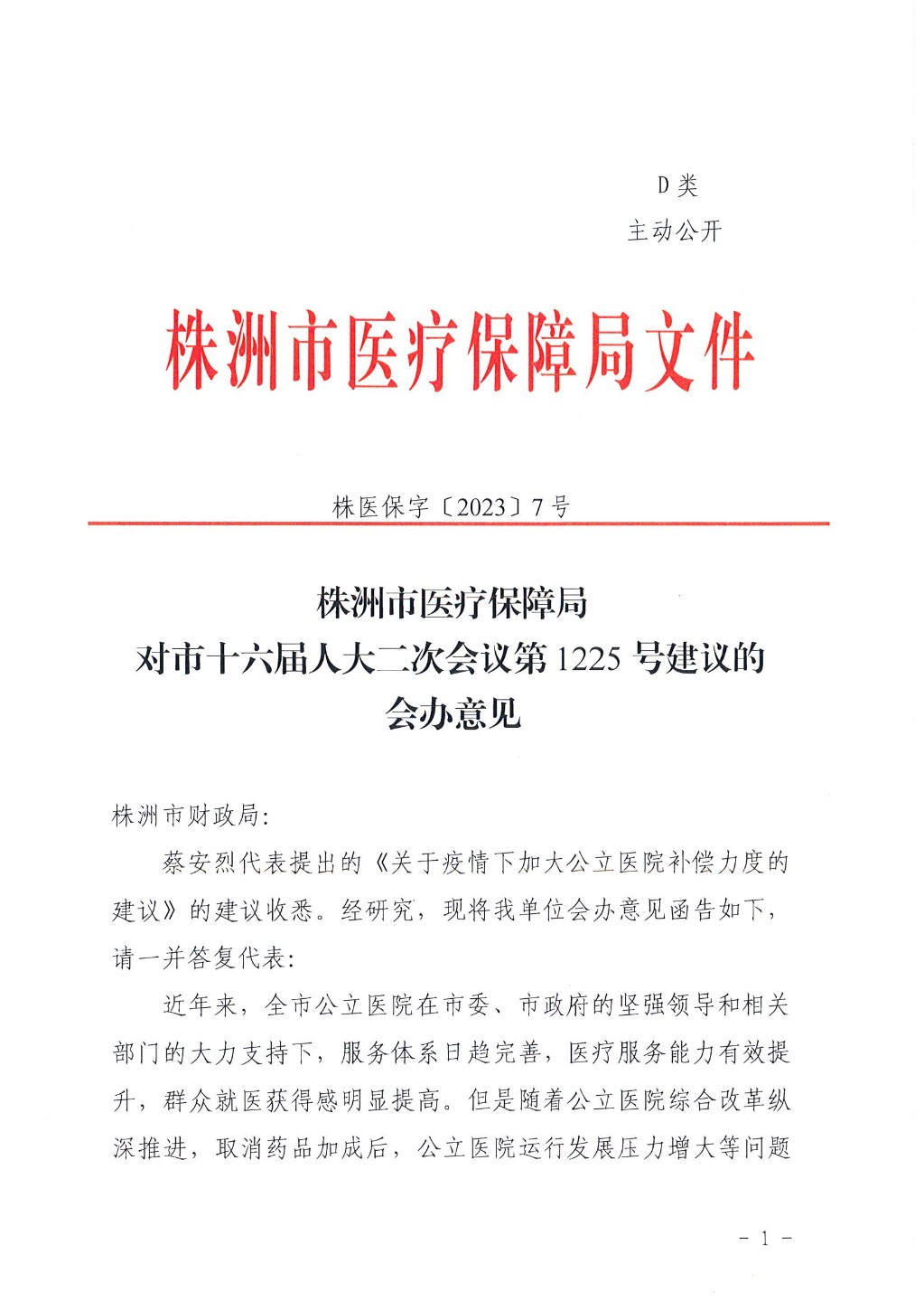 株洲市医疗保障局关于市十六届人大二次会议第1225号建议的会办意见
