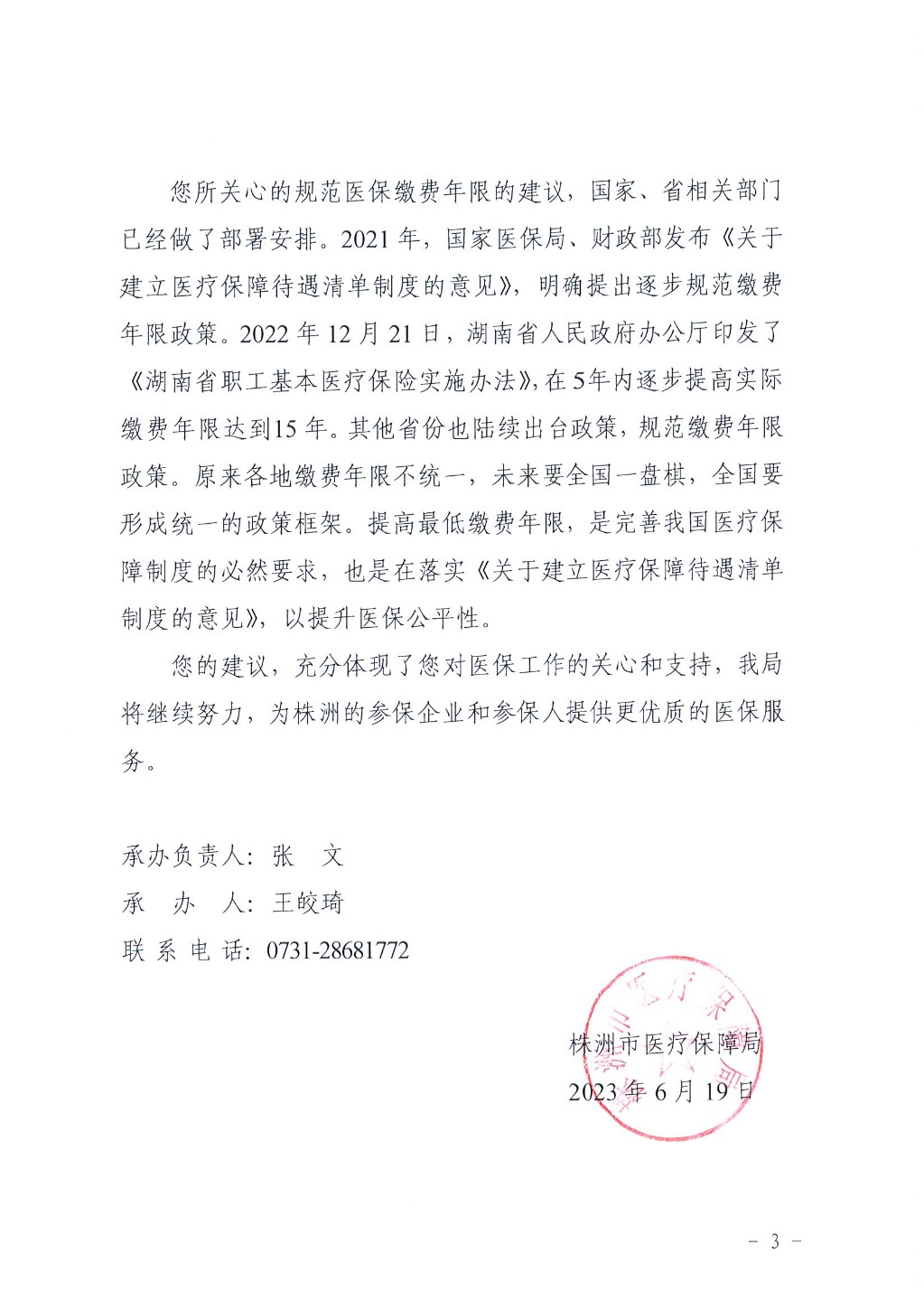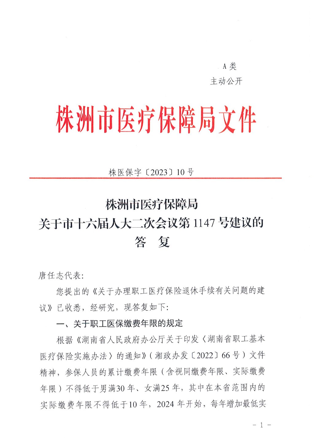 株洲市医疗保障局关于市十六届人大二次会议第1147号建议的答复