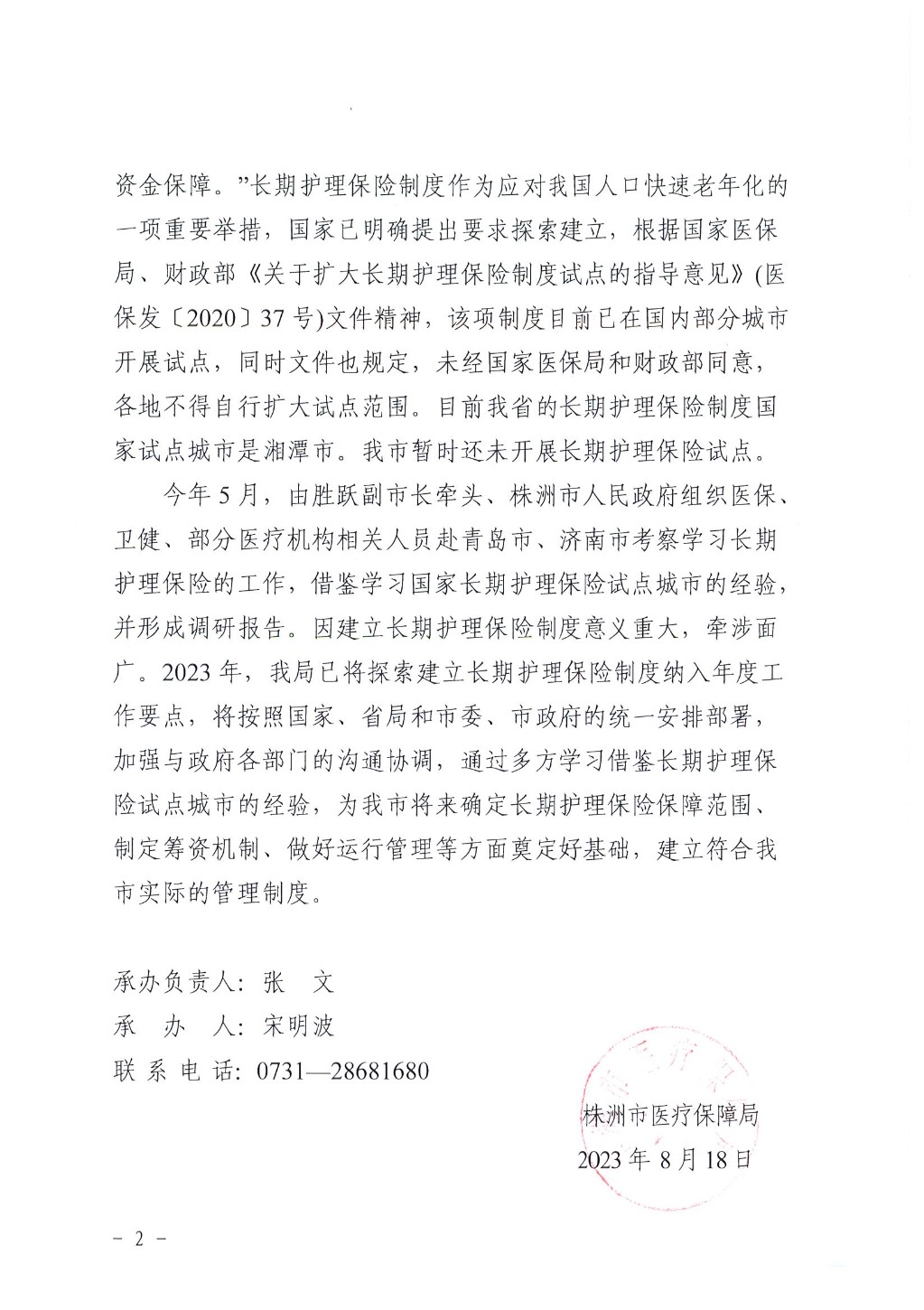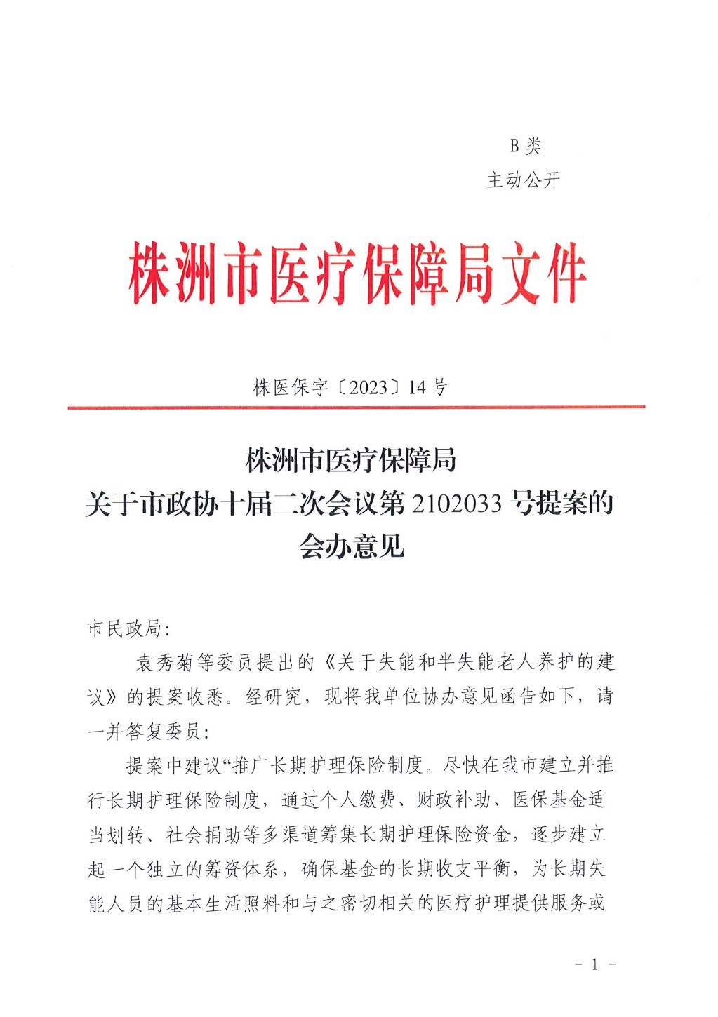 株洲市医疗保障局关于市政协十届二次会议第2102033号提案的会办意见