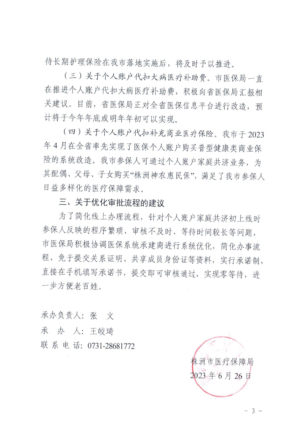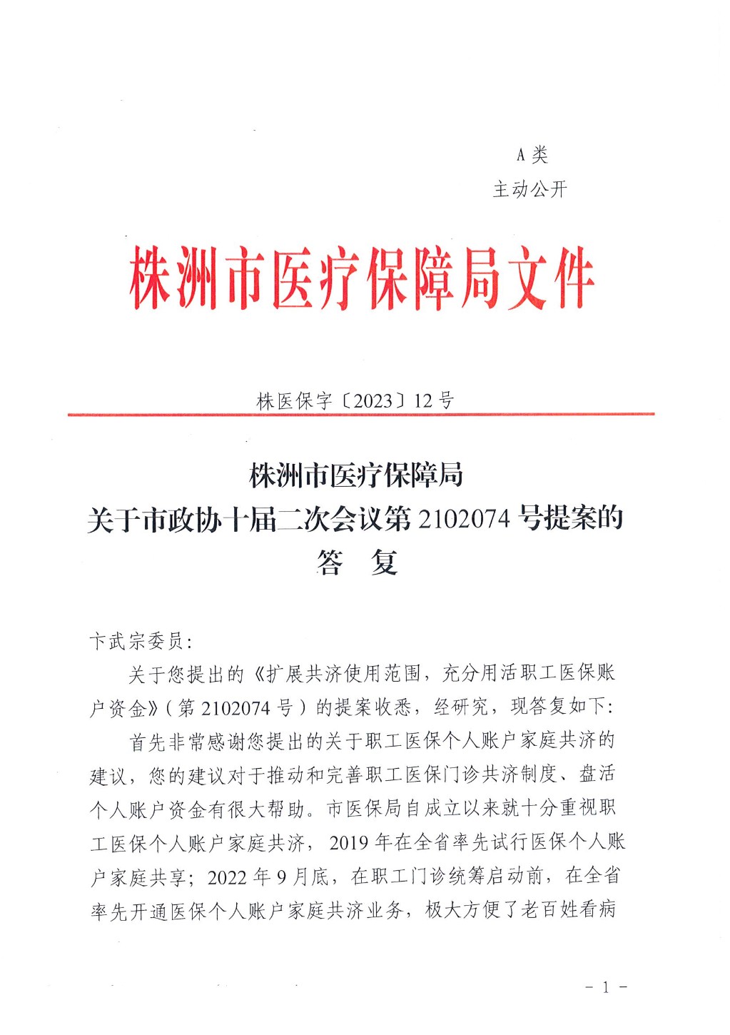株洲市医疗保障局关于市政协十届二次会议第2102074号提案的答复