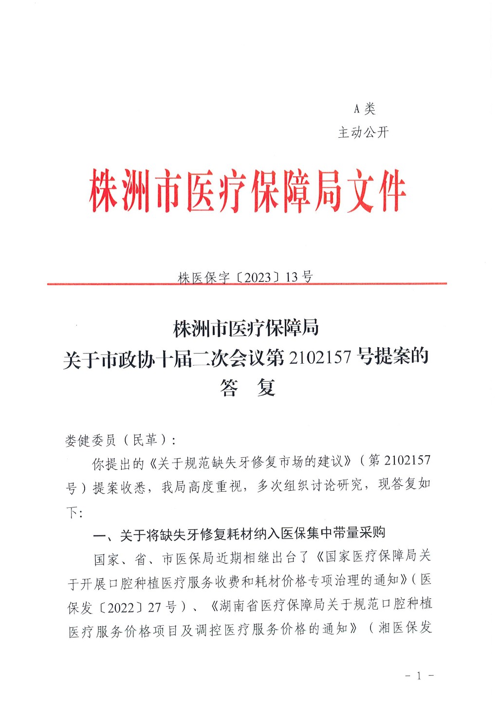 株洲市医疗保障局关于市政协十届二次会议第2102157号提案的答复