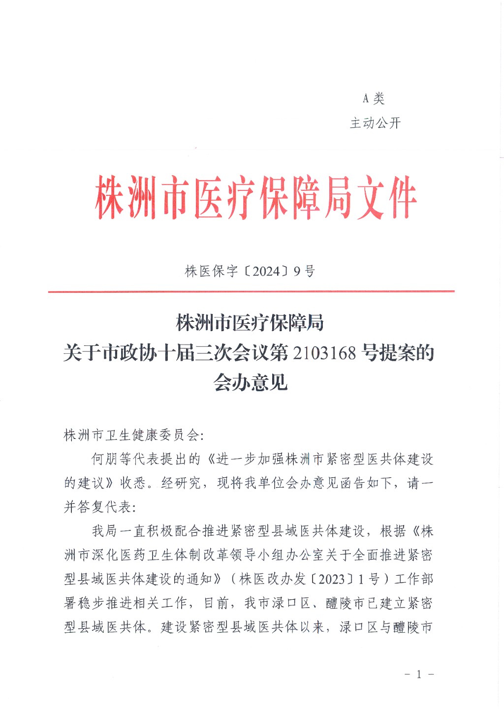 株洲市医疗保障局关于市政协十届三次会议第2103168号提案的会办意见