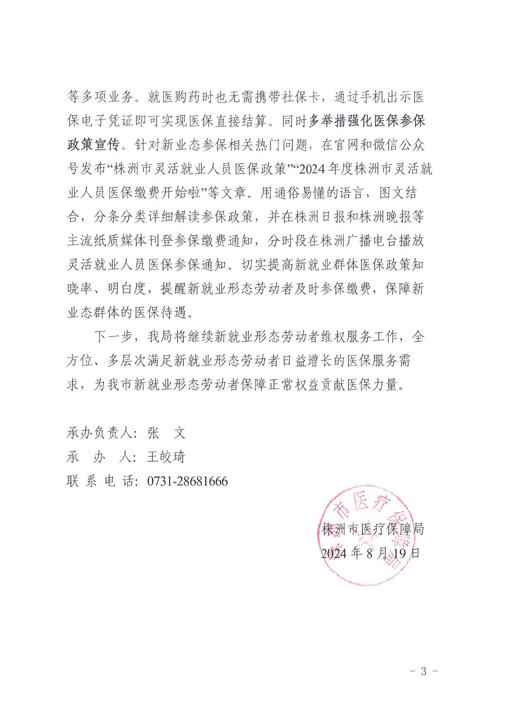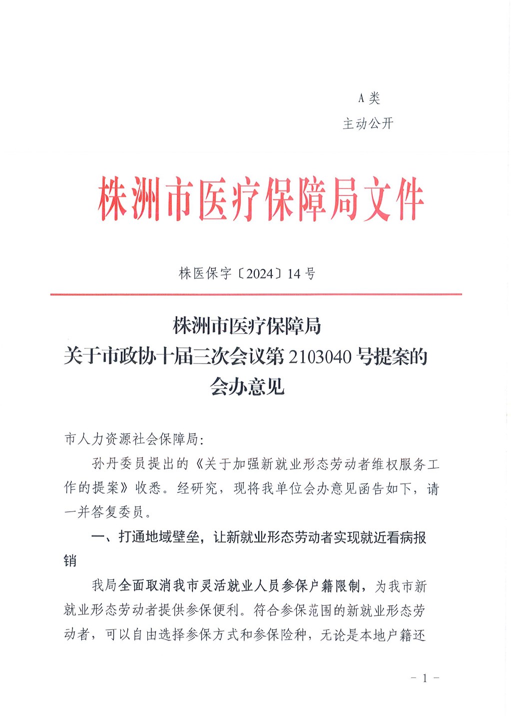 株洲市医疗保障局关于市政协十届三次会议第2103040号提案的会办意见