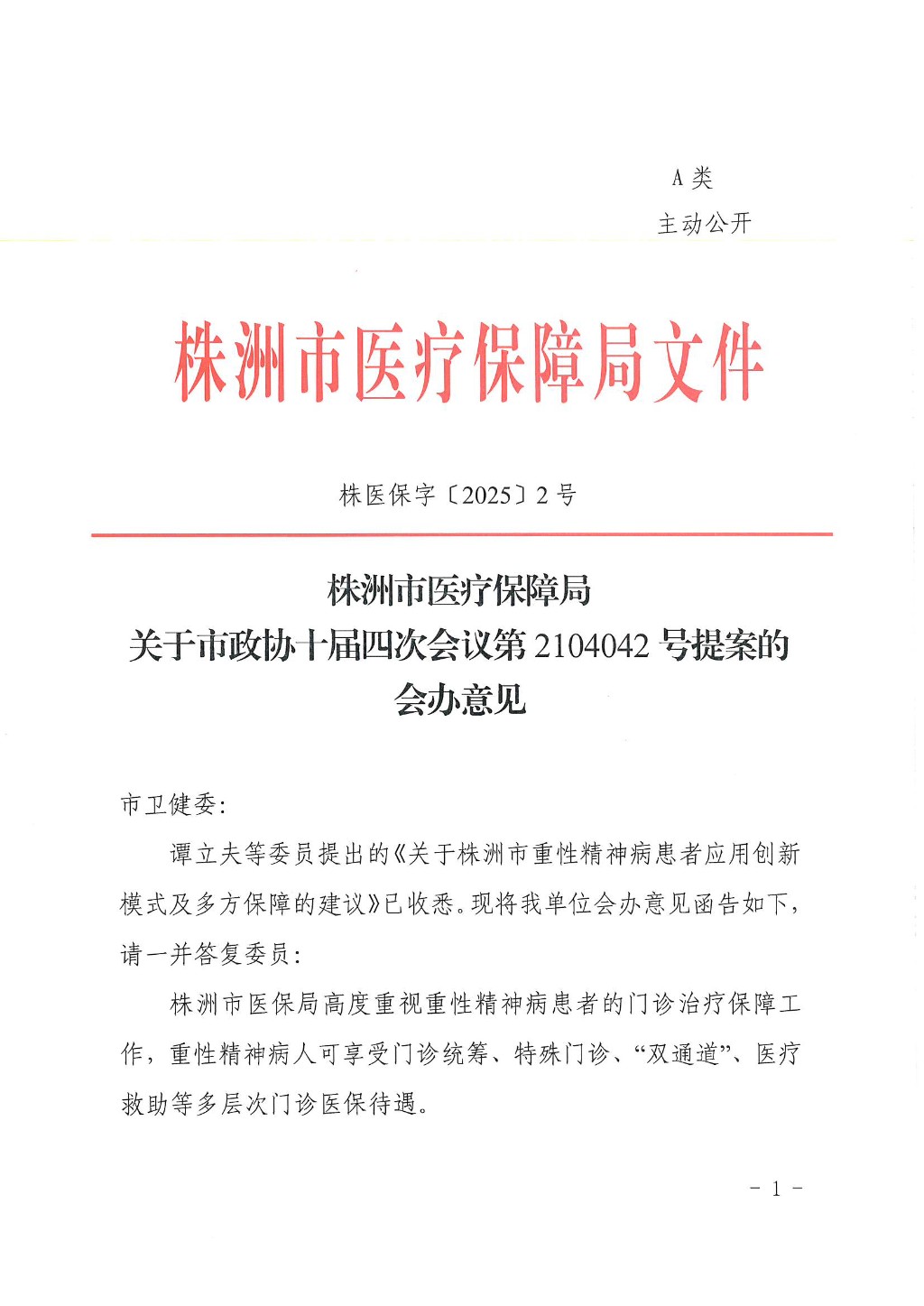 株洲市医疗保障局关于市政协十届四次会议第2104042号提案的会办意见